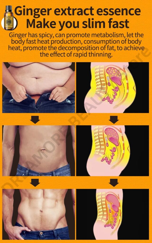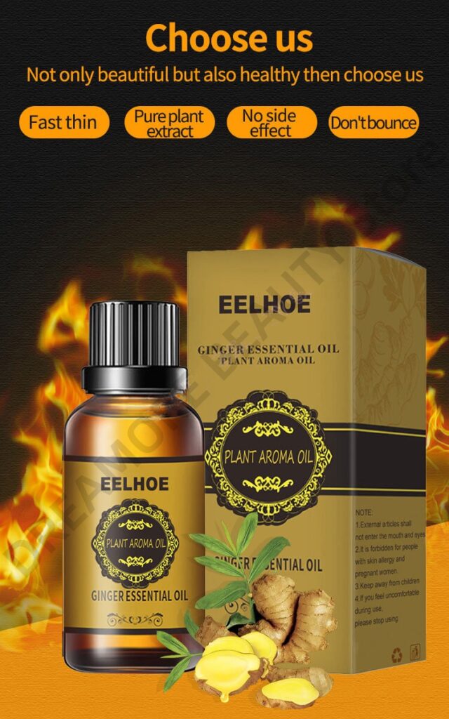 100% Natural Ginger Oil For Belly Fat, Skin Acne, Sore Feet, joint Pain And Body Massage For Better Sleep.